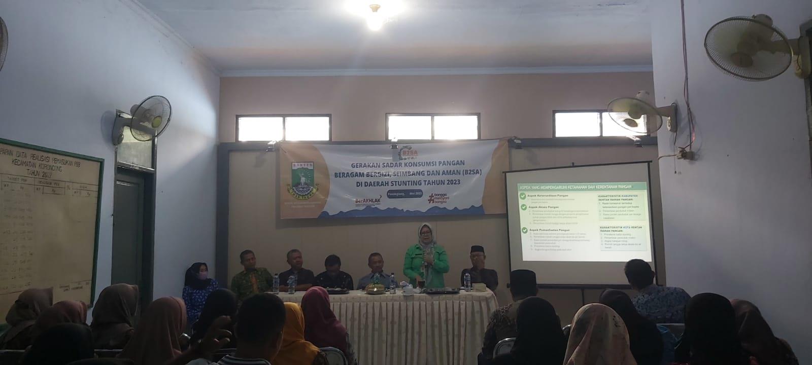 Dinas Ketahanan Pangan Provinsi Banten menggelar acara Bimtek Kader Pangan Beragam Bergizi Seimbang dan Aman diwilayah Kecamatan Koroncong Kabupaten Pandeglang pada hari Kamis (11/05/23) diaula kantor kecamatan Koroncong Pandeglang
