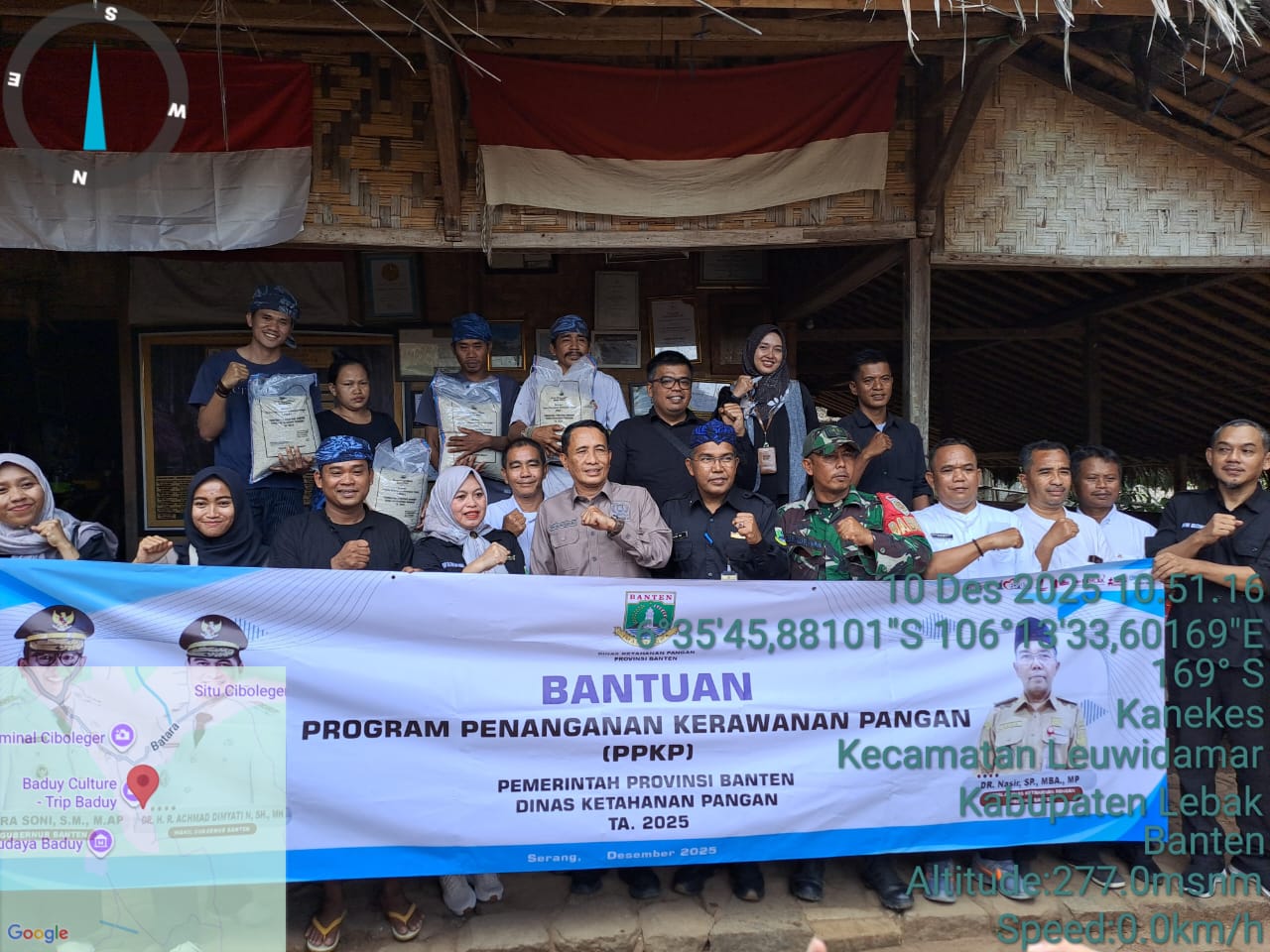 Lebak, 10/10/12/25 -Dinas Ketahanan Pangan Provinsi Banten (Kerawanan Pangan dan Gizi ) pada hari ini, Dilaksanakan pendistribusian dan penyaluran Bantuan pangan dalam rangka program penanganan kewenangan provinsi di Wilayah kecamatan Leuwidamar kabupaten Lebak sebanyak 830 KPM, secara simbolis di lakukan di desa Kanekes Kabupaten Lebak di rumah Dinas Jaro Oom, bantuan berupa 10 kg beras biofortifikasi dan 1 kg Ayam Ras beku .