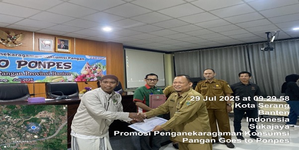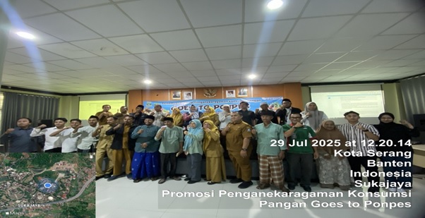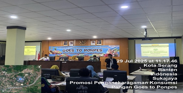 Kegiatan Promosi Penganekaragaman Konsumsi Pangan Goes to Ponpes dimulai dengan laporan panitia dimana dilaporkan bahwa kegiatan pertemuan diikuti oleh 50 orang yang terdiri dari Pengelola Dinas Ketahanan Pangan 5 Kaubupaten / Kota, Pondok Pesantren dan Penyuluh Pendamping. Kegiatan kedua merupakan kelanjutan dari kegitaan sebelumnya, dimana pada kegiatan ketiga peserta diajarkan materi terkait potensi pangan lokal yaitupotensi talas beneng yang bernilai ekonomis tinggi talas beneng dalam pemanfaatan lahan pada Ponpes.