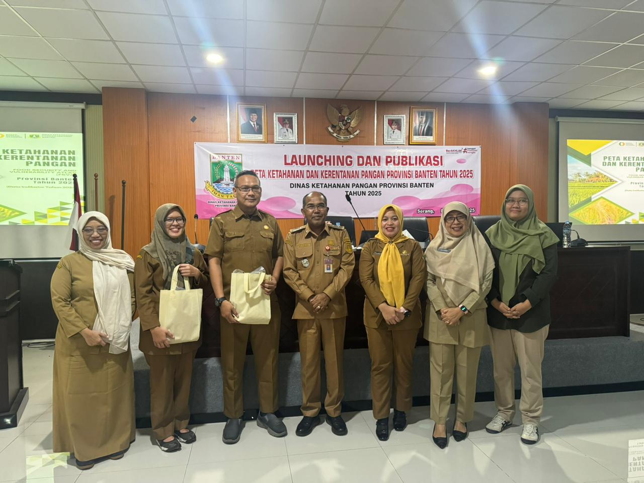 Pemerintah Provinsi Banten melalui Dinas Ketahanan Pangan Provinsi Banten ( Kerawanan Pangan dan Gizi ) menyelenggarakan Pertemuan Launching dan Publikasi Peta Ketahanan dan Kerentanan Pangan Provinsi Banten Tahun 2025 bertempat di Aula Dinas Ketahanan Pangan Provinsi Banten. Pertemuan dibuka oleh Kepala Dinas Ketahanan Pangan Provinsi Banten dan dihadiri oleh Peserta yang terdiri dari Tim FSVA Provinsi Banten, OPD lingkup Provinsi Banten, Instansi Vertikal, serta OPD Kabupaten/Kota yang menangani Ketahanan Pangan dan Perencanaan.
