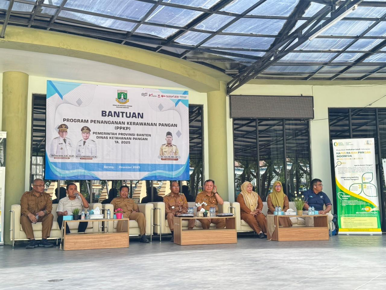 Serang, 8 Desember 2025 -Pemerintah provinsi Banten melalui dinas ketahanan pangan sukses menggelar acara Pelepasan Penyaluran Cadangan Pangan Untuk Daerah Rentan Rawan Pangan Dalam acara pelepasan penyaluran cadangan pangan untuk daerah rentan rawan pangan pada program penanganan perlawanan pangan tingkat provinsi Banten tahun 2025.