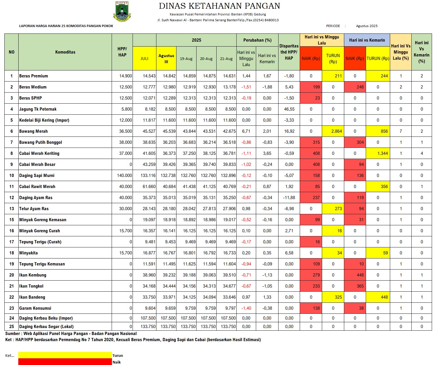 Sumber Gambar :PEMANTAUAN STABILITAS PASOKAN DAN HARGA PANGAN MINGGU KE 3 BULAN AGUSTUS 2025