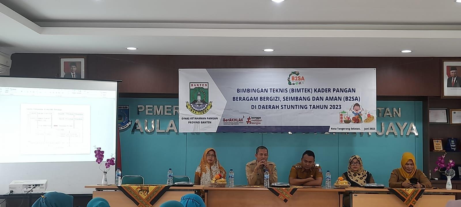 Tangsel- Dinas Ketahanan Pangan telah menggelar acara Kegiatan Bintek Kader Pangan Beragam, Bergizi Seimbang dan Aman (B2SA) di Daerah Stunting di Provinsi Banten yang berlokasi di Kelurahan Bakti Jaya Kota Tangerang Selatan, acara digelar pada hari Senin (12, Juni 2023). Dalam meningkatkan kesadaran, peran dan partisifasi masyarakat dalam mengembangkan pola konsumsi pangan yang Beragam, Bergizi Seimbang dan Aman (B2SA) dalam mewujudkan masyarakat Banten yang sehat, aktif dan produktif.