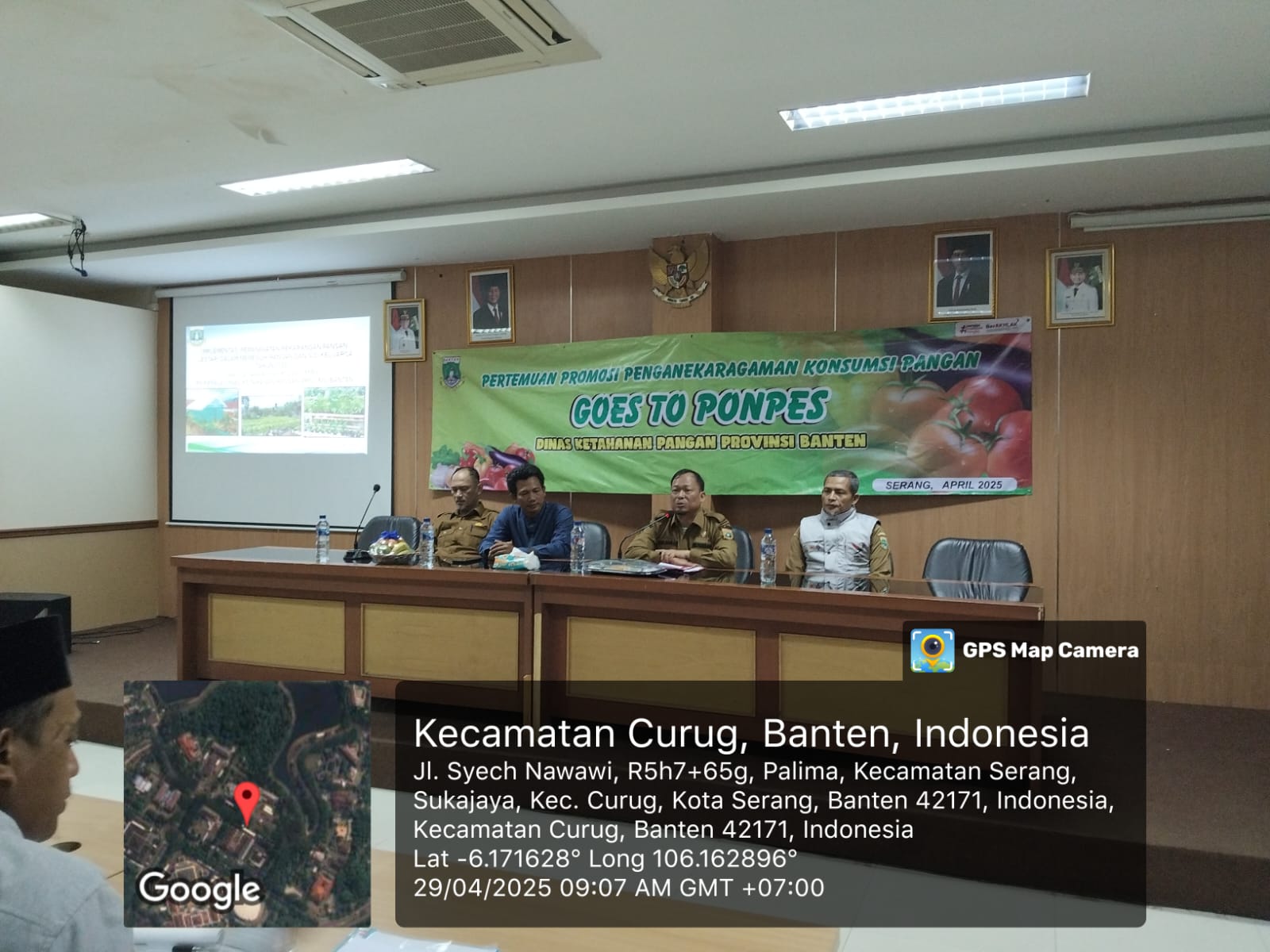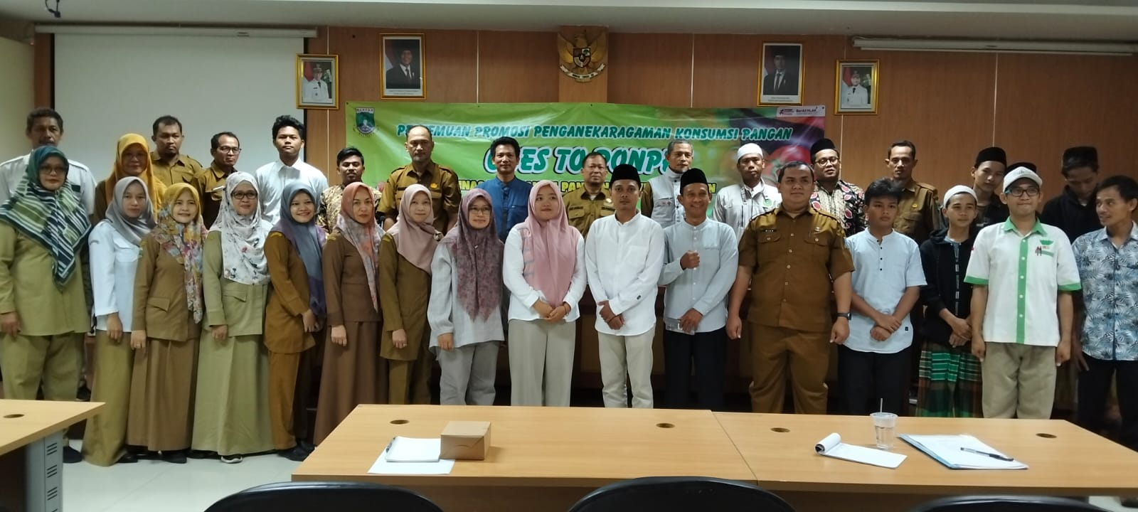 Dinas Ketahanan Pangan menggelar acara Promosi Penganekaragaman Konsumsi Pangan Goes to Ponpes di aula Dinas Ketahanan Pangan Provinsi Banten Kawasaan Pusat Pemerintahan Provinsi Banten (KP3B) Palima Serang Banten. Peserta yang turut hadir berkisar 50 orang yang terdiri dari Pengelola Penganekaragaman Pangan Kabupaten/Kota, 9 Pondok Pesantren perwakilan dari 4 Kabupaten Kota diantaranya Kota Serang, Kabupaten Serang, Kabupaten Lebak dan Kabupaten Pandeglang, dan telah hadir pula Penyuluh Pendamping, dengan tujuan agar lingkungan sekitarnya bisa mandiri pangan dan untuk pemenuhan gizi keluarga, dengan harapan Untuk mendorong pembangunan ketahanan pangan yang mendukung pembangunan secara keseluruhan dalam hal pengelolaan Pemanfaatan Lahan Pekarangan di Lingkungan Pondok Pesantren secara bersama – sama