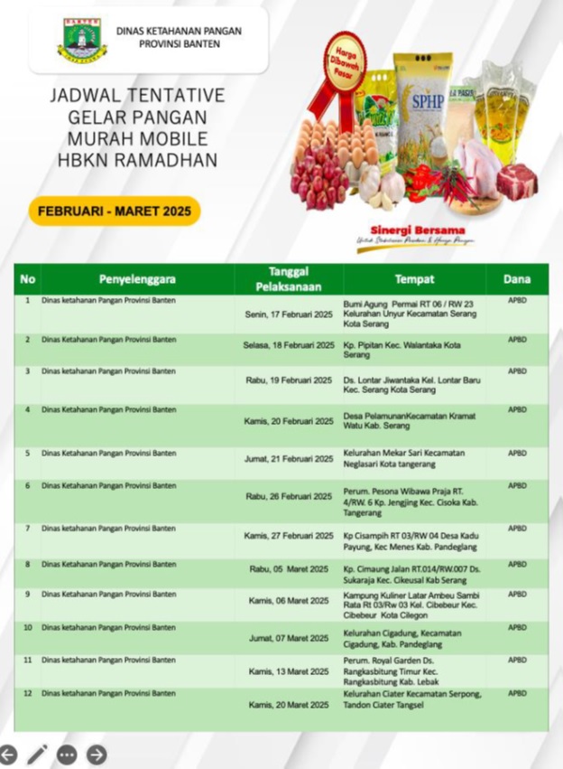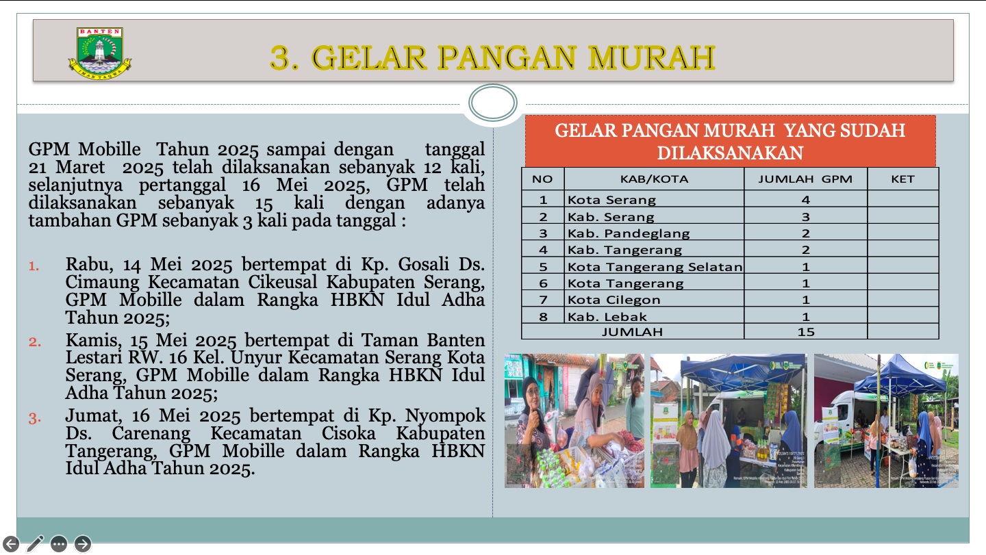Langkah-langkah ini diharapkan dapat membantu menstabilkan harga dan memastikan ketersediaan bahan pangan yang diperlukan oleh masyarakat di Provinsi Banten