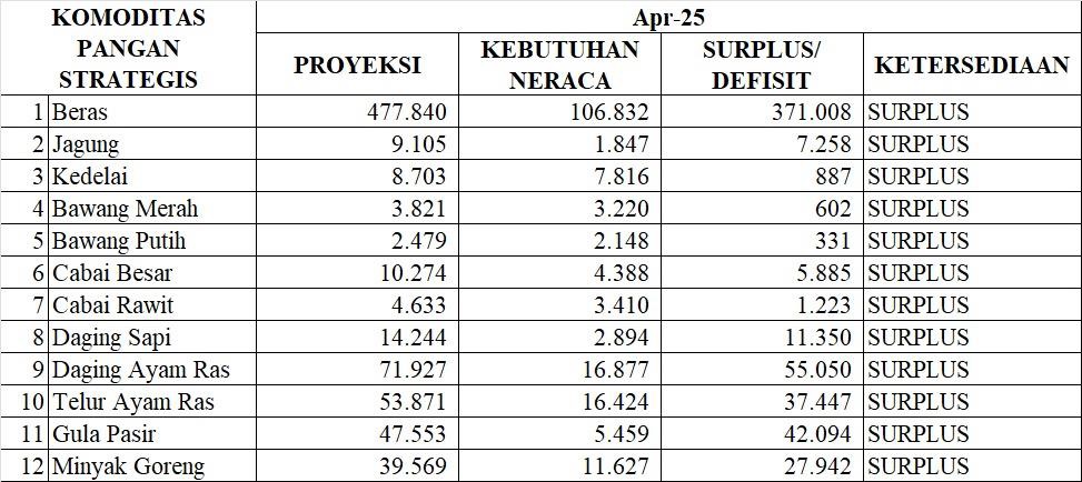 Sumber Gambar : PropertySTABILITAS PASOKAN DAN HARGA PANGAN PANGAN POKOK PADA MINGGU KE 1 BULAN APRIL 2025