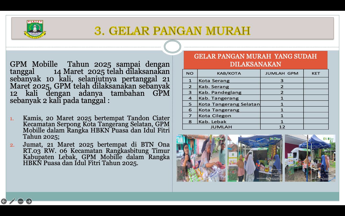 Langkah-langkah ini diharapkan dapat membantu menstabilkan harga dan memastikan ketersediaan bahan pangan yang diperlukan oleh masyarakat di Provinsi Banten.